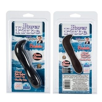 The Dr. Joel Kaplan Power Probe is a perfectly designed prostate probe that's meant to pinpoint just the right spot to stimulate the male g-spot. The curvy body is contoured thoughtfully to fit comfortably and pleasurably in the anal canal. A dramatically angled pointed head seeks out the prostate at the same time. You can use this toy with or without the vibration, to put the 2 speeds to work, just push the base to start things up. Made from silky, hygienic silicone, this vibe is completely body safe, and the material tends to be hypoallergenic for anyone with sensitivities. Takes 1 AA battery (sold separately).