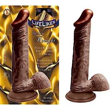 Another incredible dong for the girls and boys that love a black toy that is life like is the sensational Lifelikes Black Knight, a superb 7-inch penis shaped dildo with a smooth brown penis head, jet black veined shaft and set of wrinkly ball.