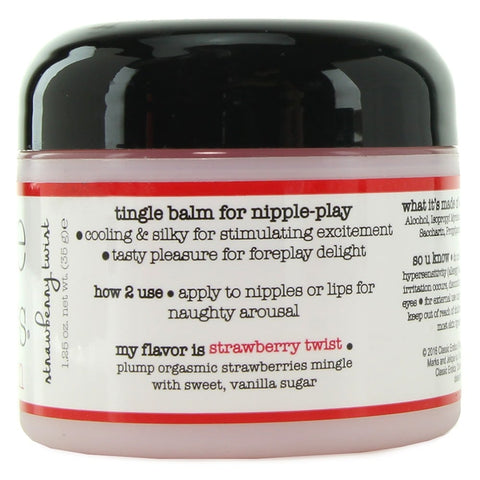 Nipple Nibblers Tingle Balm Strawberry Twist is a sweetly flavoured lickable treat from Jelique. This sexy Nipple Nibbler Tingle Balm adds lots of chilly toe-curling tingle to erogenous zones. From lips to nipples and beyond.