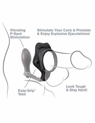 With the Rock Hard Ass-Gasm in your ass and the ring wrapped snug around your cock and balls, you'll stay harder and stronger than ever before! The stretchy silicone ring puts the squeeze on performance letdowns, maintaining thick, throbbing erections that last longer! The round, smooth plug makes entry and retrieval a snap, while the thin, tapered shaft ensures the plug will stay in place between your cheeks when the action heats up.