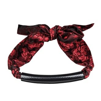 Incredibly simple yet unquestionably effective, the Scandal Bar Gag, once knotted over the back of the head using gorgeously patterned brocade ties, fits fully over the mouth. Placed between the front teeth or lips, the firm, subtly pliable bar prevents all manner of oral endeavours, keeping a submissive mate quiet and cooperative while exciting frustration builds. At a full 53 inches (134.5cm) of length, there's lots of room to adjust the fit of those velvety backed ties. Polyester and phthalate free PVC (bar).