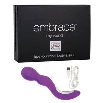 A sleekly elegant premium silicone vibe boasting an astounding array of vibration functions angled thrillingly toward g-spot bliss, the Embrace collection's My Wand perfectly combines luxurious design with toe-curling functionality.