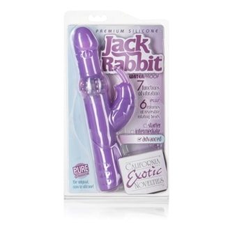Fans will adore the Silicone Jack Rabbit, a silicone version of the famous Jack Rabbit vibrator. These vibrators combine multiple sensations at once that are designed to maximize your pleasure. First, experience multiple levels of rotation speed on the head, which inserts easily through its ergonomic, contoured design that allows firm access to your G-spot. As the head rotates, further enhance the sensation with moving beads that provide firm, smooth rounded sensations as they rail against you. Control pulsating and escalating vibration sensations through an easy to access control panel, all the while further vibrations pleasure your clitoris, through the standard rabbit / dolphin style mini-vibrator perched on top of the Jack Rabbit. If you haven't yet experienced a Jack Rabbit style vibrator, it's likely that this toy will become your new best friend. 3 AA batteries (sold separately) keep this design powered with the maximum rhythmic speeds.