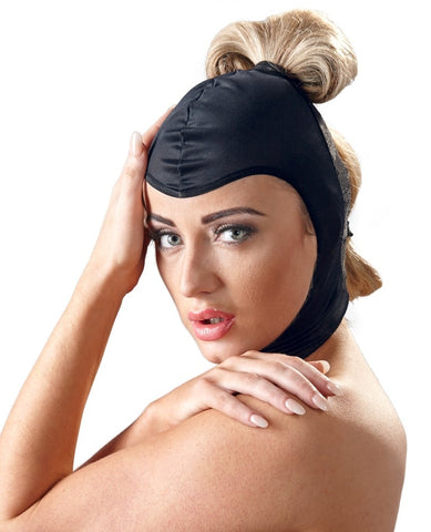 Bad Kitty Ponytail Mask: Black tight head mask made of elastic fabric. With holes for face and hair.