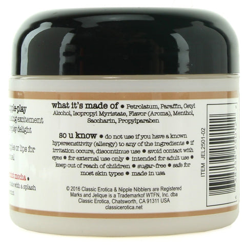 Nipple Nibblers Tingle Balm Peppermint Mocha is a sweetly flavoured lickable treat from Jelique. This sexy Nipple Nibbler Tingle Balm adds lots of chilly toe-curling tingle to erogenous zones. From lips to nipples and beyond.
