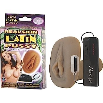 Hot Action! Real Skin Latin Pussy and Ass measures 7.5 inches in total length. Realistic looking and feeling Pussy and Ass is made from a super soft material called RealSkin. RealSkin is similar to CyberSkin in virtual texture. Pussy has nice lips and a tight soft tunnel. Vibrating sex toy requires 2 AA batteries.