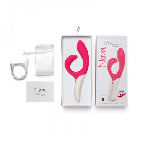 The new We-Vibe Nova is a uniquely designed toy that takes the rabbit vibrator style to a whole new level! What makes this incredible dual stimulator so unique is its very flexible clitoral arm - it flexes with your movement, allowing it to stay in constant contact with your clitoris. It has whisper quiet motors in both the G Spot stimulator and the clitoral stimulator that can operate independently, or at the same time. Its waterproof feature gives you the opportunity to soak up the sensations while in the bath or shower. The free downloadable We-Connect app allows you to control your Nova from your phone - increasing and decreasing intensities, as well as creating your own vibration patterns. Hand the control over to your partner to spice up the experience even more!