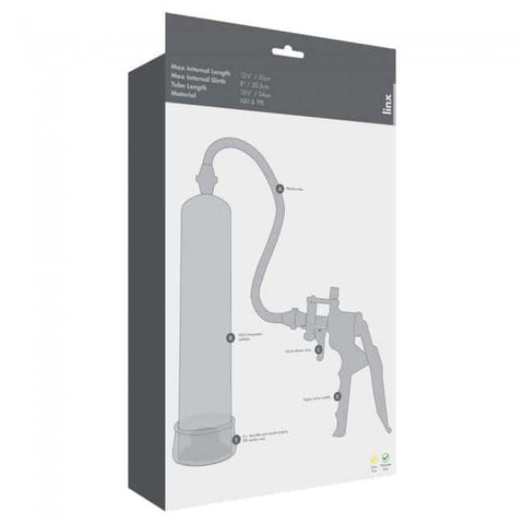 The X Factor Penis Pump Linx Extra Large penis pump measures in at 12 inches and features a vacuum pump that works to enlarge your penis in length and girth. This penis pump also encourages healthy blood flow and keeps your penis in great shape.